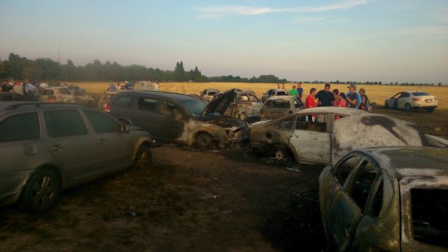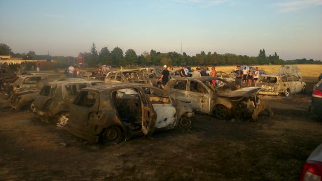 Muselo sa to rozsirit z prilahleho pola lebo tam bol zhoreny pas niekolko stoviek metrov pola a potom to preskocit cez tu cestu kde boli zaparkovane tie auta.Medzi nimi dva Ople - Corsa C,chytena zadna cast a Vectra C Caravan,zhorena predna cast.Ale bolo tam aj auto s holandskymi znackami...