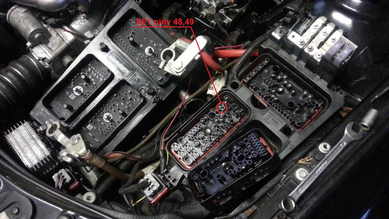 vasekpetr1 píše:Už se smiřuji s variantou, že budu muset tahat nová lana z UEC - XE1 piny 48,49. Z toho obrázku rozebrané přední pojistkové skříňky chápu, že se dá dostat k tomu konektoru XE1, který je zasazen do tělesa pojistkovky. Ten je pak možné vytáhnout a dostat se ke kabeláži (jako je povytažená XE3) a případně osadit kabel s fastonem pro konektor? Obávám se, že místo díry pro spodní faston bude zalepená díra, tak jako na XE1 na obrázku (to jsou také nezapojené mlhovky? :D )