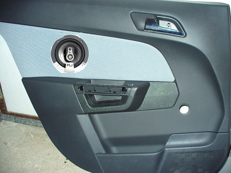Co by jste řekli na nové umístění zadních repro ? Zkusil jsem to v editoru , jak by to vypadalo . Byly by přišroubovány na tapecu , zakryty origo mřížkou . Díra ve dveřích za nimi by byla .