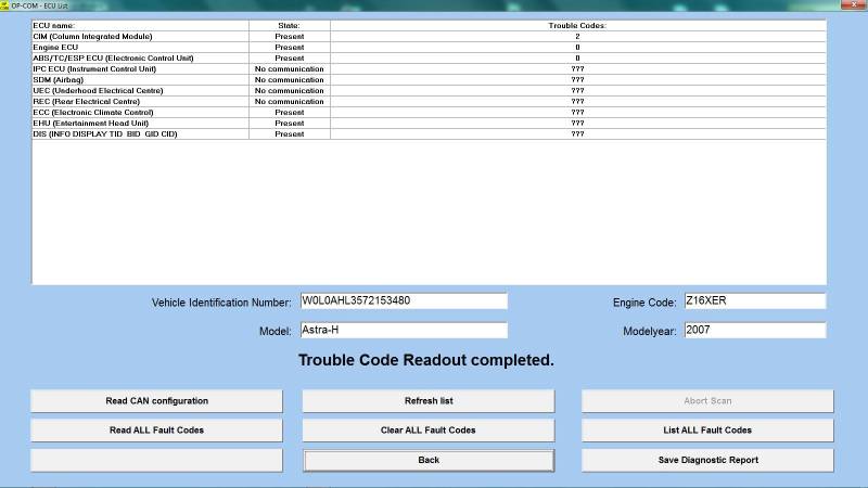 Podle OP-comu auto není vybaveno přístrojem IPC, REC, UEC a jednotkou airbagu.