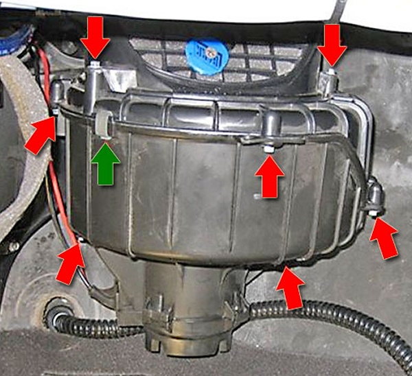 Odmontovat stěrače a torpédo - pod ním je mřížka sání do ventilátoru a příruba klapky - tu povolit a ven