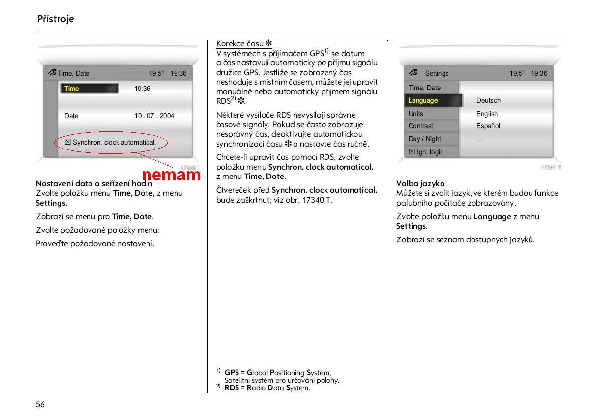 Zdravim, mam CD30MP3 a BID a podla navodu nejde nastavit aktualizaciu casu cez RDS. Ked sa dostanem k polozke Clock Sync Off, tak sipkou sa neda prepnut na polohu "On". Co som tu vycital, tak mam nastavit jazyk systemu na Nemcinu a pojde to? Ja chcem ale jazyk v anglictine, nemam rad nemcinu :) Palubny pocitac mi aktivovali cez MDI ci GDI ci ako sa to vola :)