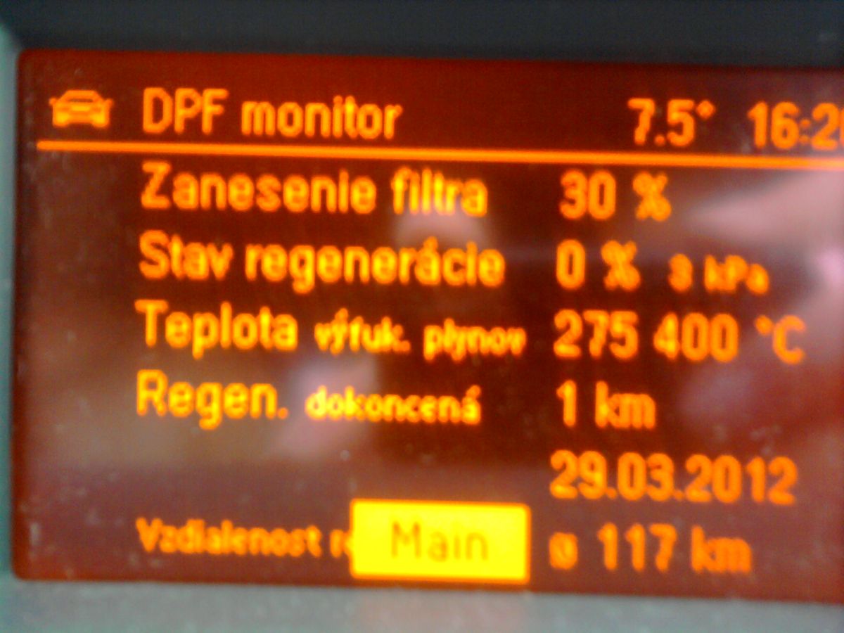 Teraz mám od poslednej regenerácie najazdených 100 km a filter zanesený na 80%, ostáva už len 10 % a regenerácia je tu opäť. To sú také dve jazdy do práce.