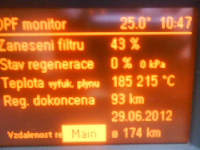 Zkusenosti z poslednic 2 dnů. Vcera vecer jsem se vydal na cestu do brna v pr,behu cesty probehla regenerace, ktera zacala pri 70% a po 413. Pred chvili jsem se vratil z Vyletu Brno -Most a zpet - MKJ ukazuje 654 od posledni regeneracee a 79% zaneseni. Zitra jedu z brna do ol. Tak uvideme jak daleko to este pujde.