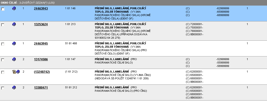 Pro 3dv. jsem našel jen variantu PŘEDNÍ SKLO, LAMELÁRNÍ, POHLCUJÍCÍ TEPLO, ZELEŇ TÓNOVANÁ (IDENT GF)