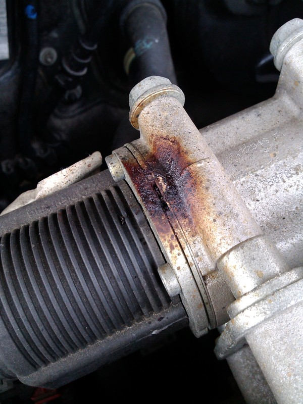 Když EGR rozebereš, tak zjistíš, že je konstrukčně řešený tak, že mezi tělesem selenoidu a tou dolní částí je vložená podložka, která má v sobě právě v tomto místě díru, takže tudy unkat splodiny prostě musí. Byl jsem z toho taky překvapený. Po vyčištění EGR a sešlápnutí plynu tudy při sundaném krytu motoru vždycky začoudilo.
