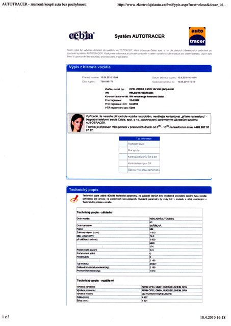 Cebia je na nic. Když dokáží na jedno auto vystavit dva papíry, jeden, že je OK a druhý, že je kradené. Bylo i v televizi. Koukni na autobazar www.rupexim.cz , mají auta z Arvalu a super jednání.