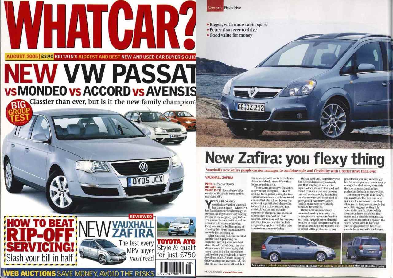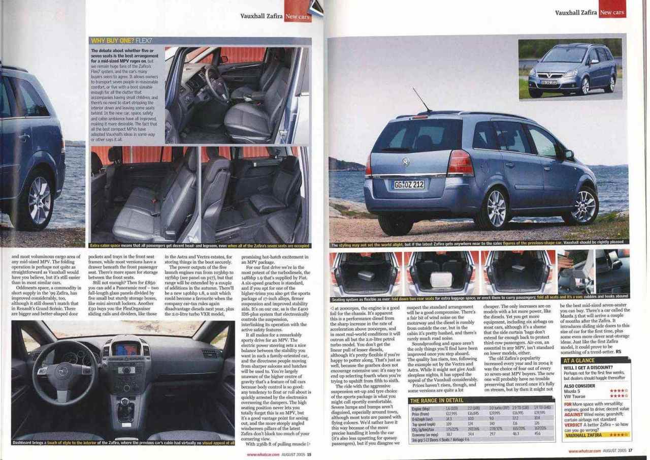 "první dojem " What CAR - 2005 - Vauxhall Zafira - v angličtině máte tam motory 1.9 atd - jen ty první co se do nich dáváli - dávám spíš vzpomínkově mám i v lepším rozlišení či pdf