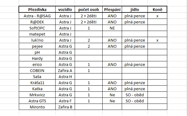 Jinak čekám na platby na účet, momentální stav je cca 35 lidí / + 10 dětí na sobotu. Spát zde bude cca 23 lidí i s dětmi.