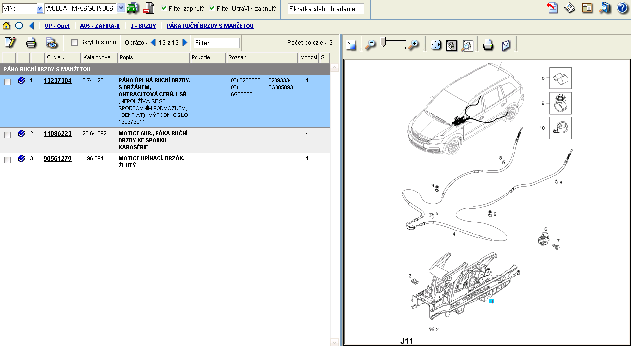 čize musím hladat OPEL Zafira B Handbremshebel len s číslom 13237304?