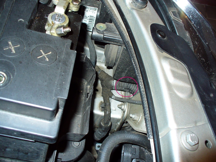 Káblík od čidla vede ve svazku v tom husím krku - je vidět na obr. za baterkou . Vede to dolů k chladiči , kde se to rozbočuje na 3 káblíky - jeden dolů na čidlo a ty dva někam k chladiči ( kam přesně to nebylo vidět ) . Tak snad ti to pomůže