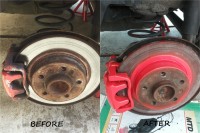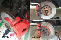 2) Nafarbil som všetky brzdové strmene a náboje. Použil som farbu DupliColor v spreji na brzdy. Cena spolu 12,50 za dva spreje. Neostalo mi akurát na vonkajšie strany kotúčov, to sa môže dorobiť ešte hocikedy.