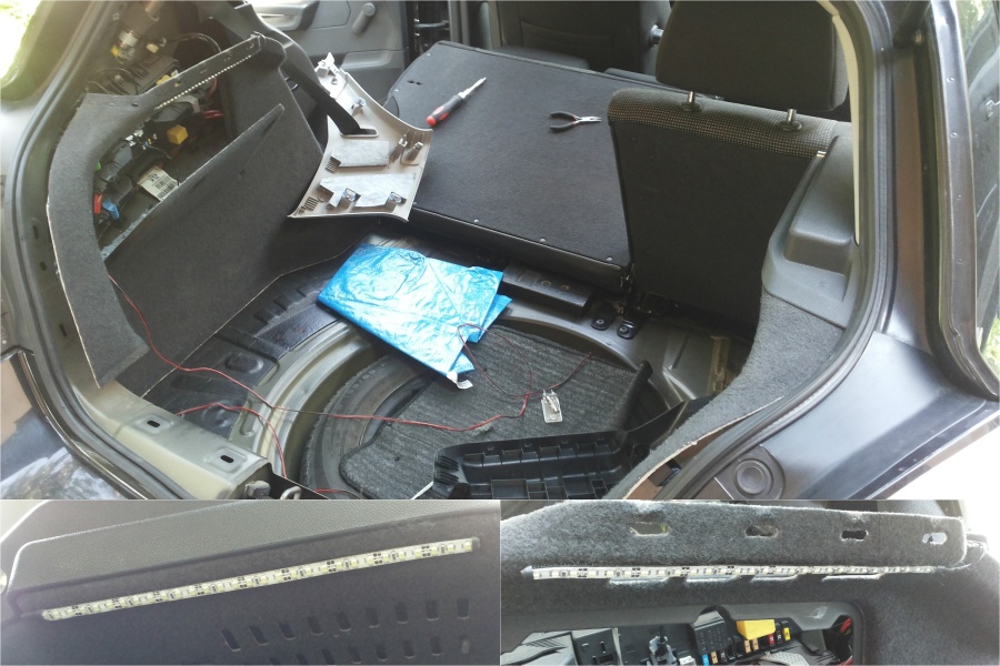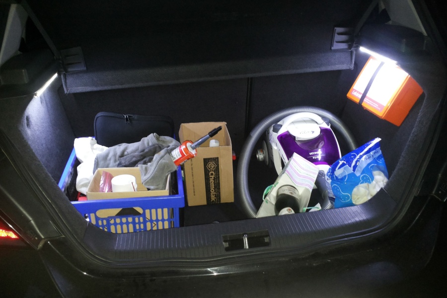 Ešte pridávam foto homemade sufitky do slnečnej clony k zrkadlám. Nechcelo sa mi objednávať a čakať ledky ešte aj sem, tak som vyrobil z led pásu ktorý som dával aj do kufra, na plastový kolík so zašpicatenými koncami nalepil samolepiacu medennú fóliu a k tomu priletoval kúsok led pásika. Svietivosť vynikajúca.