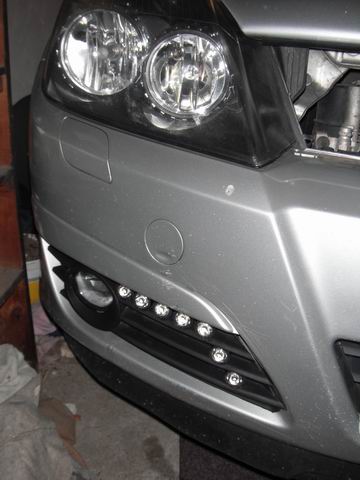 Dnes jsem skončil s výrobou umístění denních světel, chtěl jsem zachovat mlhovky, když už jsem je jednou dodělával. Zabralo to teda dvě odpoledne, Že s tím bude tolik práce jsem si nemyslel, lepeno PU lepidlem, dopadlo to jak to dopadlo, tak mě nekamenujte. Zítra bych chtěl zapojit to relé a oživit OPCOMem.