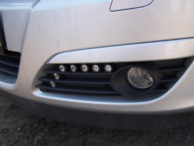 Mně by se to víc líbilo, kdyby to bylo v tom stříbrným výstupku nad krytkou mlhovek. Ale vypadá to dobře i tak