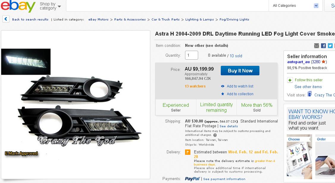 Při prolézání ebay jsem narazil na tyto ledky na Astru za mega cenu.