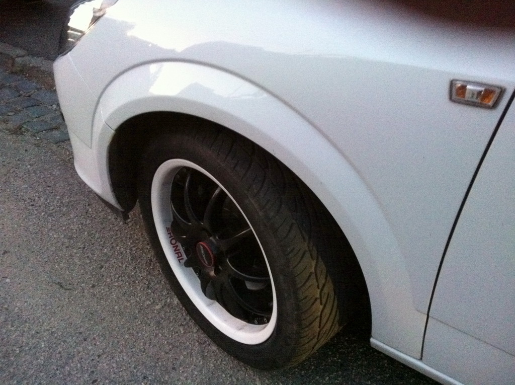 Uz sa stmievalo, takze fotky s mobilom nic moc. Astrule by hodne pomohli nizsie pruziny a o palec vacsie tie disky. Takto to ma v ramci moznosti astry skoro max komfortne.
