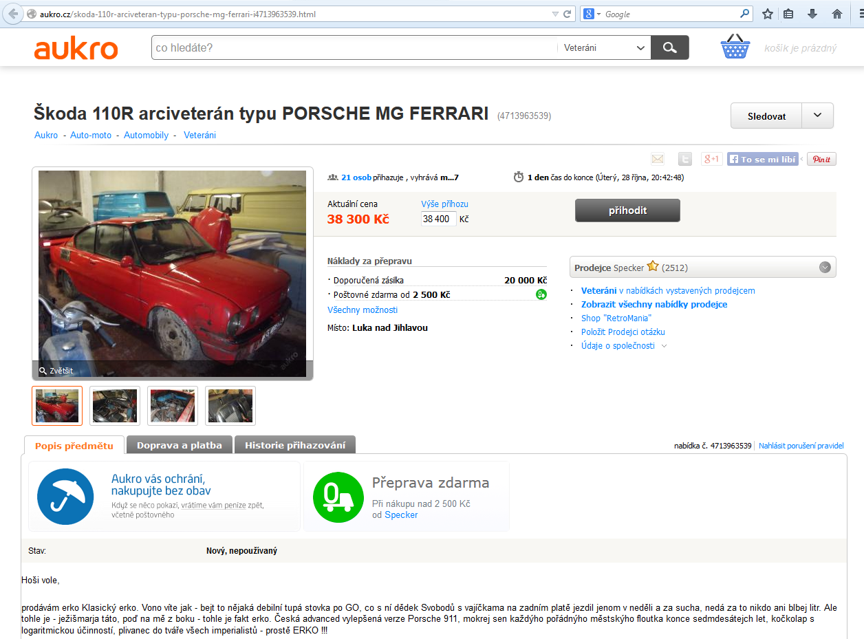 Tento inzerát na Rko na aukru mě dostal - i takto se dá prodávat vrak