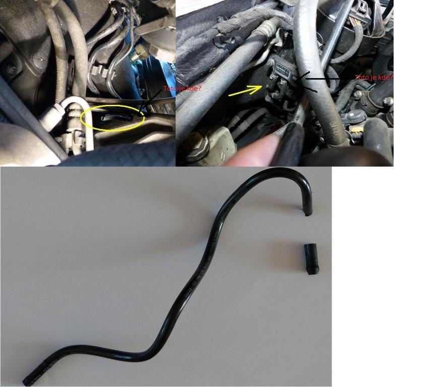 RE Bracho90: víš kde máš naftový filtr? Při pohledu do motoru je na jeho levé straně (na crash boxu) přimontován tlakový spínač. Je vidět na obrázku č.2 s kabelovým svazkem. Od tohoto čidla jdou dvě plastové trubky směrem dolu k výfuku. Zkontroluj si obě, 100% jedna z nich bude zlomená, prasklá nebo úplně utržená.