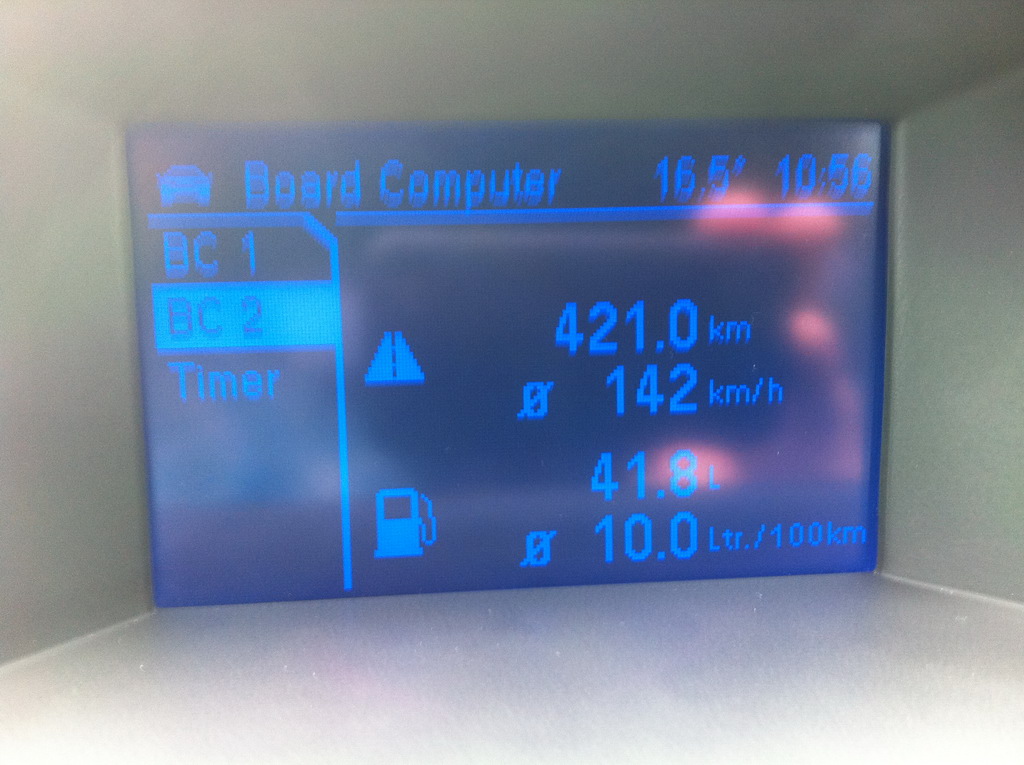 Před odjezdem na dovolenou jsem dotankoval nádrž do plna, dle propočtu jsem předtím ujel 480 km se spotřebou 5,93 l/100. Většinou kratší trasy do 20 km, město a okresky, sem tam klima. Parádní výsledek