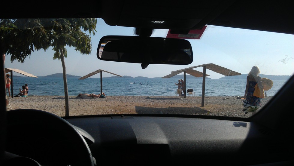 I v Chorvatsku bylo ca 14 stupnu a vytrvaly dest. Az po projeti tunely pred Zadarem a pri klesani k mori se zaclo zlepsovat a cestou na jih od Zadaru se teploty vysplhaly k 30 stupnum.