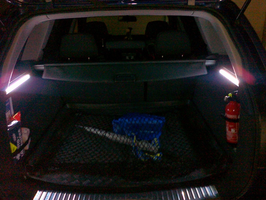 Dnes předěláno osvětlení kufru. Ta jedna bludička odsraněna a nahrazeno dvěma LED pásky. Krásné světlo a super efekt za necelé tři stovky. Špatně se to fotí a fotka hrozně klame. Skutečnost je o hodně hodně lepší.
