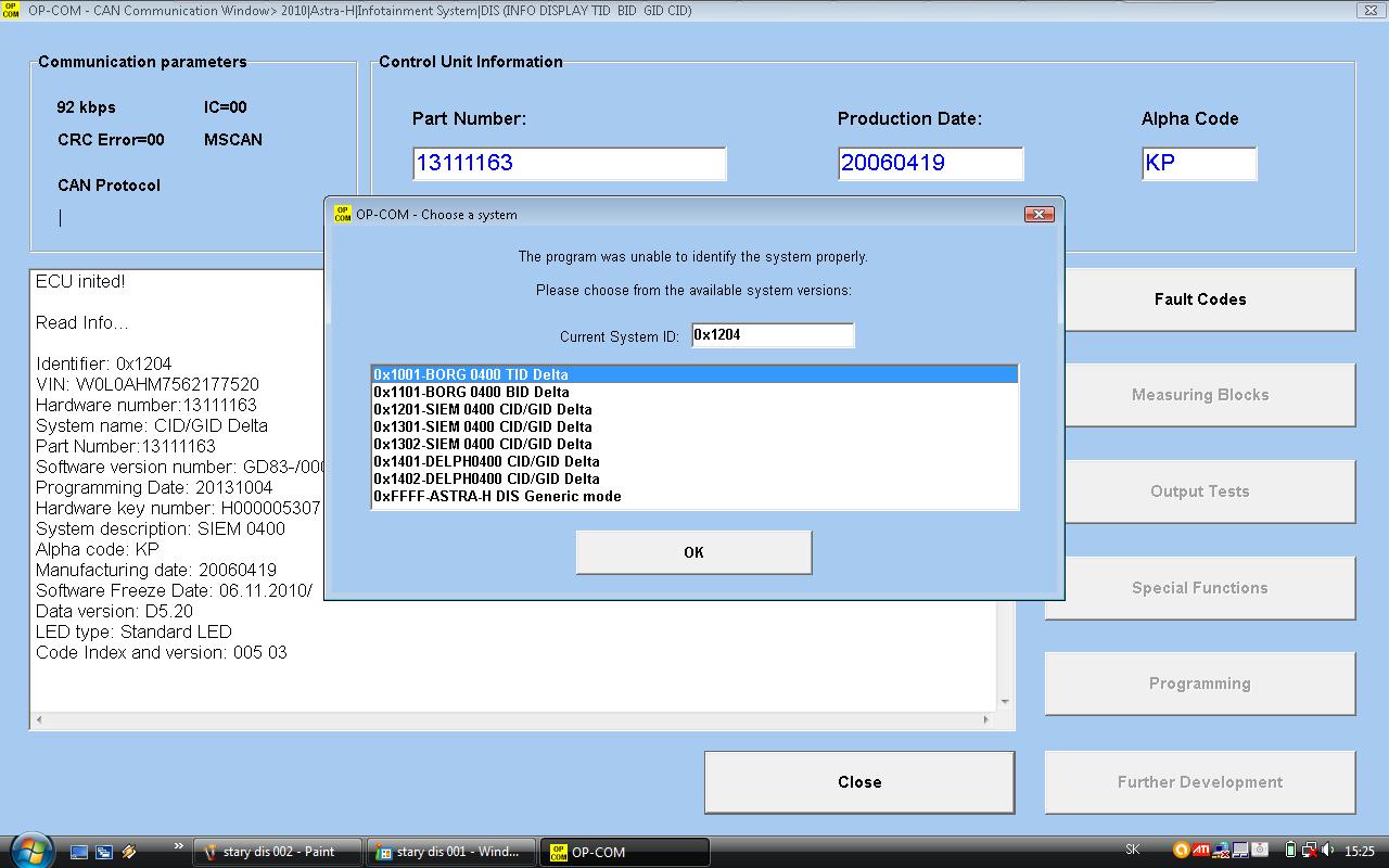 Ahoj, prave menim BID za GID a vyhodilo mi toto okno, skusal som naprogramovat jeden z troch variantov SIEM-0400, kedze display je znacky SIEMENS ale nechce mi to zobrat zo zoznamu a ulozit. Skusal som to aj napisat rucne a tiez nic. Inac display funguje, zobrazuje radio BC a vsetko len mi vyhadzuje tuto chybu
