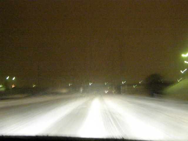 Vcera vecer/v noci cesta v tej snehovej metelici z Horneho Smokovca z Tatier domov ... aj ked polovicu casu bolo treba tu "cestu" hladat.Nastastie vsak bez vaznejsich problemov.