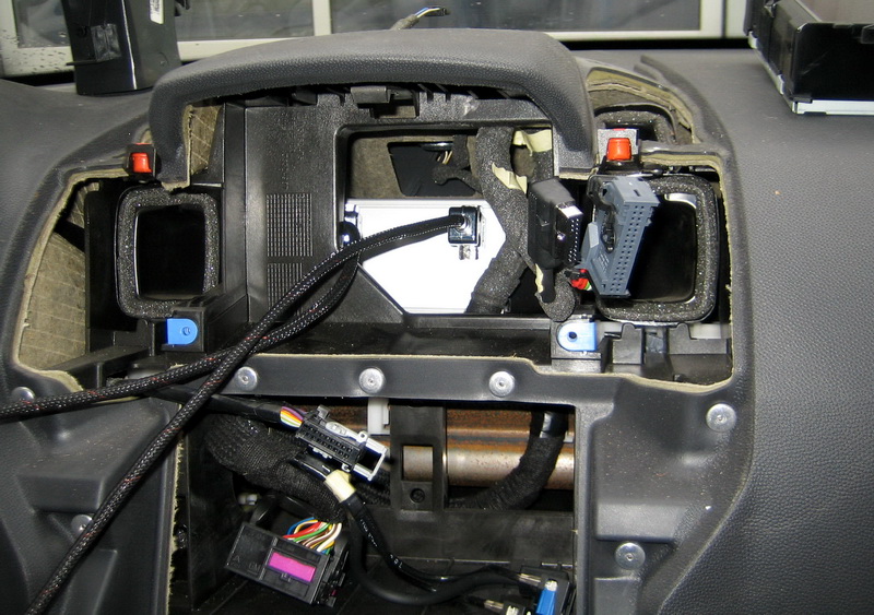 RomanK ověřil možnost zástavby MVK do Astra-H a Zafira-B. U obou modelů se modul bude osazovat za displej – viz. foto (kabely připojené k MVK jsou pouze testovací, není to RGB).