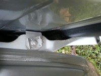 Přední dveře u řidiče, spodek dveří, pod pantem.