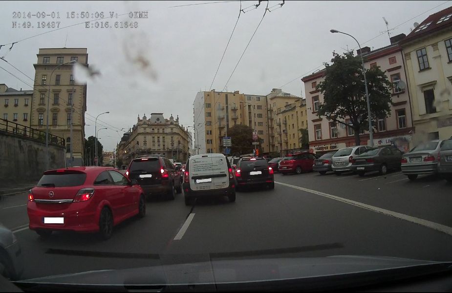 Ta Dačka se snažila jen protáhnout mezerou, ti co odbočovali do prava zablokovali provoz a před semaforem bylo volno na 10 aut.. Jel jsem za ní stejně, proto jsem tak ke středu.