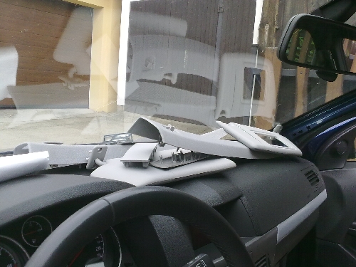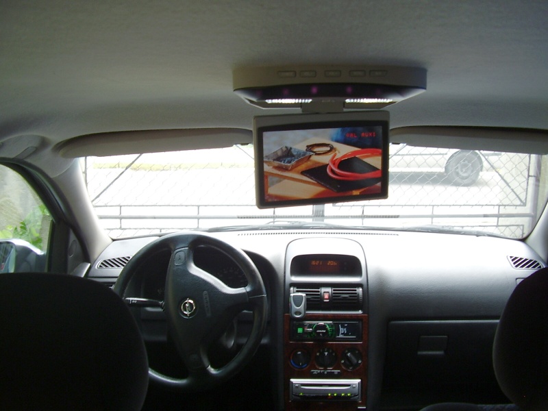 Jak jsem to dělal? Rozměřil si polohu monitoru na stropě a udělal dírku do stropu cca 5mm na kabel do monitoru, změřil si prostor mezi stropem a střechou a v tomto rozměru tedy tloušťce jsem nalepil po sundání stropu na střechu MDF desku lepidlem na lepení autoskel. Nechal den zaschnout, natáhl kabeláž od středového panelu kde přišel přehrávač přes A sloupek až k monitoru. Namontoval strop zpět a připojil k elektroinstalaci rádia přehrávač DVD. JInak monitor šel namontovat jen tím, že ho přišroubujete na panel stropu, ale nechtěl jsem, aby se mi časem váhou monitoru prověsil strop. Tak ve zkratce.
