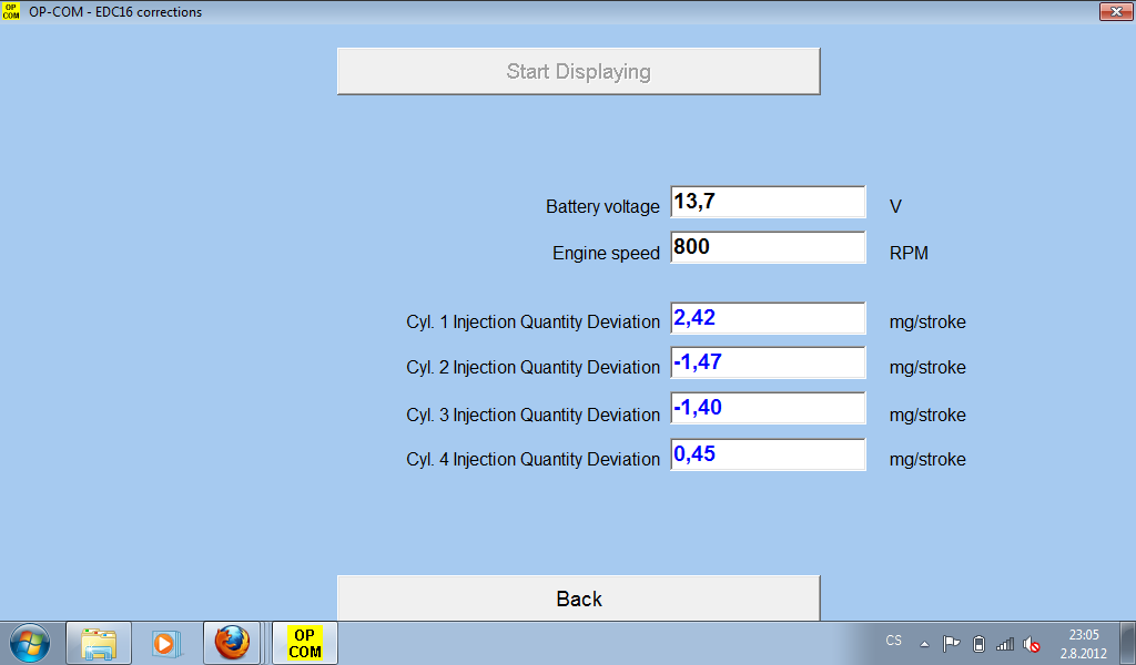 Tak pokud se nemýlím, tak by to mělo jít poznat z diganostiky, je tam i kontrola vstřiků, resp. jejich průtoku. Nevím, ve ktrých veličinách se udává, ale hodnota by měla být v intervalu (-1;1). Možná mě někdo opraví