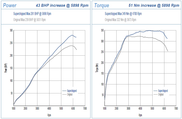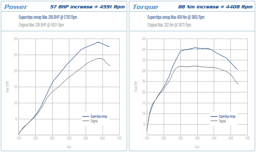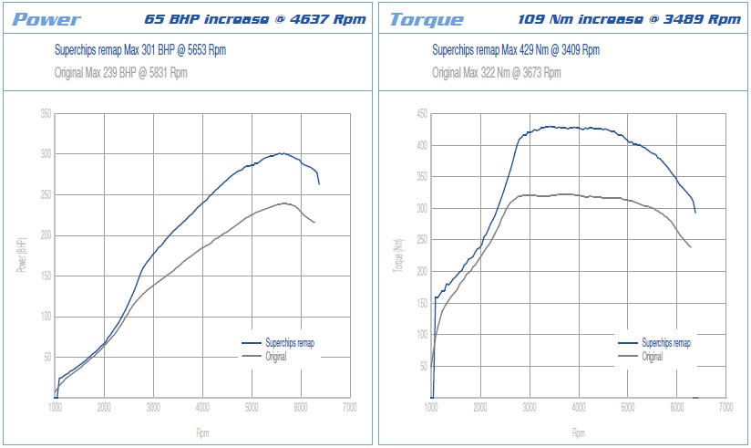 Stage1 – 281 PS a 349 Nm – je vhodná pro seriové úpravu navýšení výkonu + používát více než 98 oktanové palivo Stage 2 – 289 PS a 408 Nm – je nutná úprava laděného výfuku (Miltek, Remus…) + sportovní vzduchový filtr + samozřejmě více než 98 oktanů Stage 3 – 301 PS a 429 Nm – je nutná úprava laděného výfuku (Miltek, Remus…) + sportovní vzduchový filtr + samozřejmě více než 98 oktanů + větší interkoler s upraveným sáním + iridiové svíčky