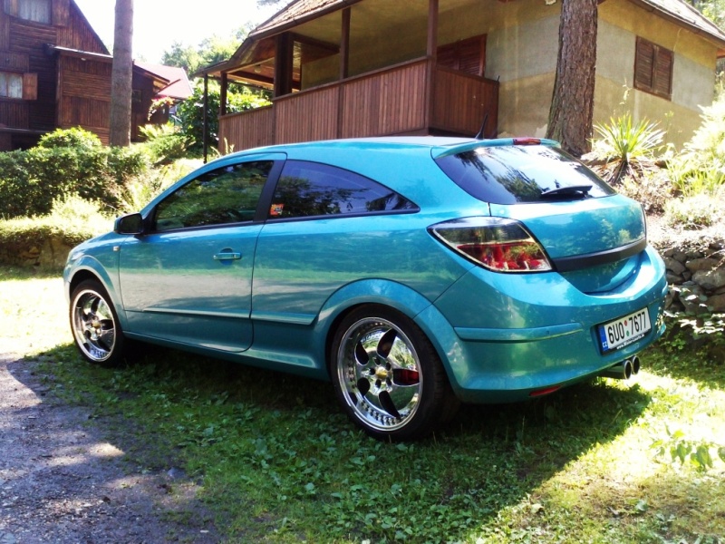 Asi o týden později jsem si našel na netu 17" original OPEL kola, protože s plecháčema jsem opravdu moc dlouho jezdit nechtěl. Dále jsem si zakoupil carbonovou folii, kdy jsem se rozhodoval kam jí nalepím. Zvítězila střecha. Dále 24.5.2012 jsem vyhodil zadní tlumič a putovala doprostřed po vzoru ASTRY OPC koncovka i když ne hranatá ale i tak lepší než nic.