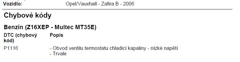 Chyba P1116 - Zkrat nebo přerušení proudového obvodu termostatu (Z16XEP má dvoustupňový termostat s vyhřívacím tělískem)