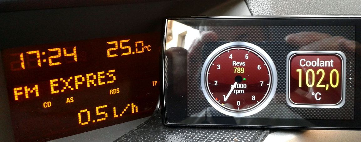 kedže sa nikto neozval, nuž som sa rozhodol objednať si adaptér na ázijskom el_obchode. Skúsil som to pripojiť do diagnostickej zásuvky okamžite to spolupracovalo s telefónom. Následne som získal ukazovateľ teploty, ktorý som stále postrádal najme v letnom období pri jazde v kolóne. Celé to stalo 8€ a aplikácia v telefóne. Výhoda je že netreba kupovať žiadny ukazovateľ a ťahať nové vedenie funguje to cez bluetooth. Telefón je stále poruke a dá sa využitý nielen ako navigácia, ale aj ako jednoduchá diagnostická. Jediné čo ešte treba doriešenie je, aby adaptér nezostával trvale pod napätím a nebolo ho treba stále demontovať, aby zbytočne nevybíjal baterku. Aj to mam vymyslene preruším prívod referenčného napätia do diagnostickej zásuvky cez relé ktoré bude ovládané palubným napätím za kľúčikom.