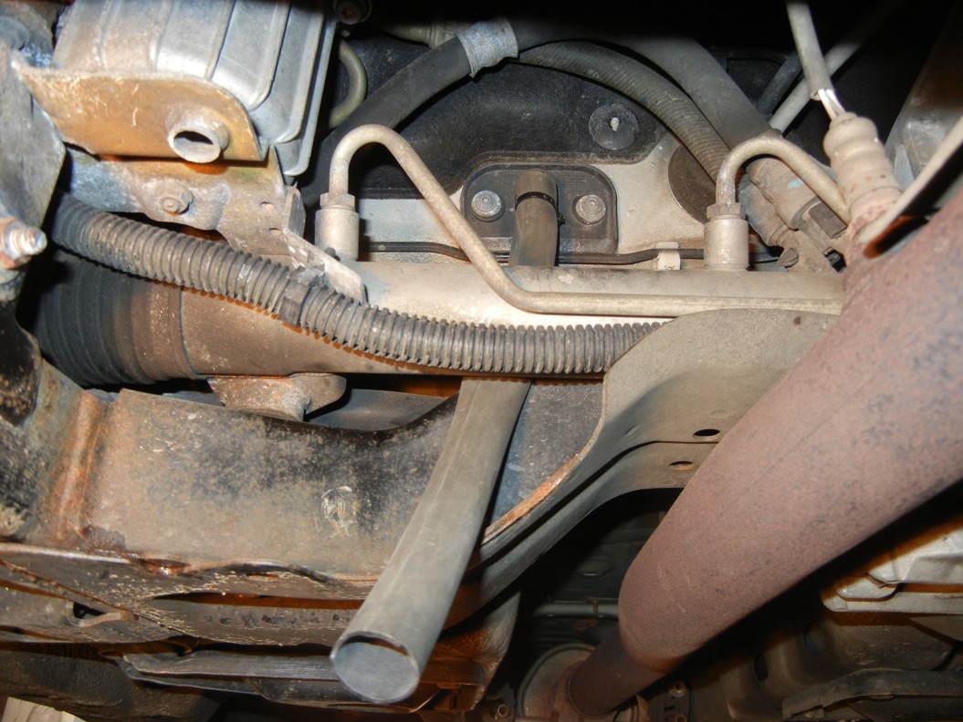 Je to nad posilovačem řízení u spolujezdce když se podíváš zespodu auta. Já tam dával i kousek hadice ať voda nekape na rám.