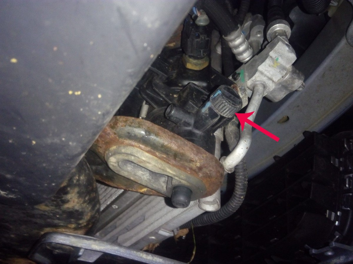 Potřebuji odpustit chladící kapalinu (výměna termostatu), předpokládám že vypouštěcí ventil by měl být to co jsem označil na fotce šipkou. Myslel jsem že tím vroubkovaným kolečkem půjde otočit a ventil tím otevřu, ale přiměřenou silou mě tím otočit nejde. Dělám něco blbě nebo to může jít tak ztuha? nerad bych něco ulomil, je to přece jenom plast